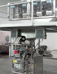 該套機組是專門針對茶葉精品小包裝設計的,機組包括DXDK110包裝機、CJS2000-F雙頭三級振動稱、機架平臺、成品輸送機,采用伺服電機同步帶拉膜。