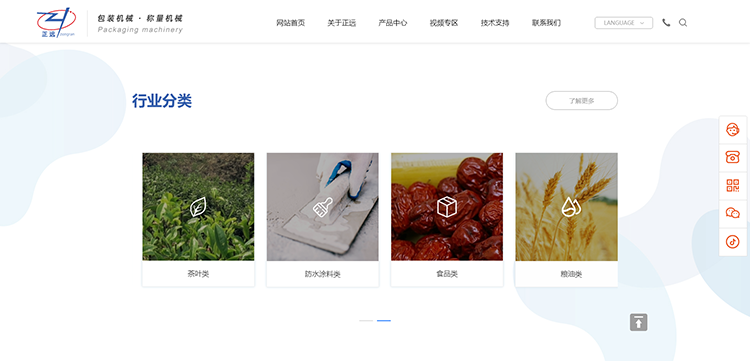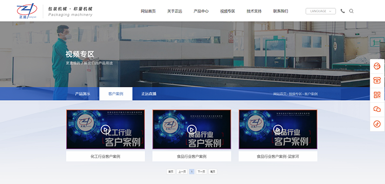資訊中心更多內(nèi)容展示,公司新聞、行業(yè)新聞、參展新聞清晰明了,一鍵搜索想要了解的資訊;視頻專區(qū),帶你快速了解合肥正遠(yuǎn)客戶現(xiàn)場包裝設(shè)備應(yīng)用。