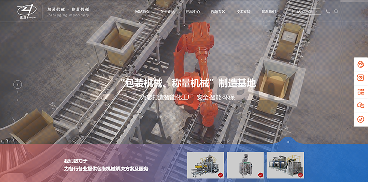 首頁高清視頻展現(xiàn)智能包裝設(shè)備工作流程,實(shí)現(xiàn)滿屏效果展示,更具視覺沖擊力,直觀感受包裝設(shè)備工作流程,宛如身臨其境。