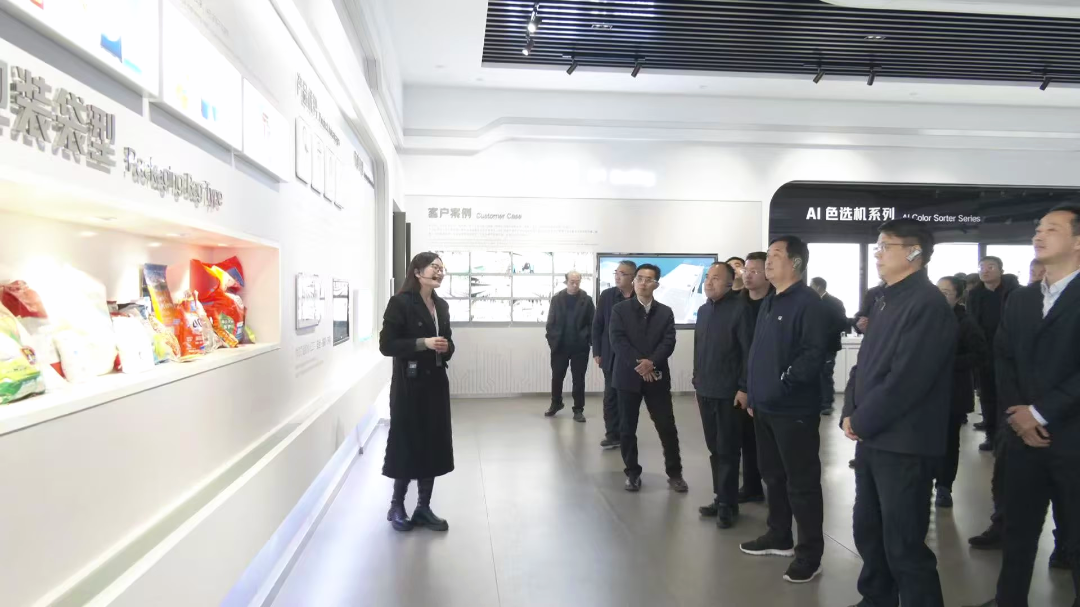 代表團(tuán)一行首先參觀了泰禾智能展廳,深入了解了泰禾智能在AI視覺識別、智能分選裝備、包裝等領(lǐng)域的核心技術(shù)與應(yīng)用成果。其中,泰禾智能在農(nóng)業(yè)領(lǐng)域的應(yīng)用案例,展現(xiàn)了智能制造技術(shù)對提升農(nóng)產(chǎn),引得代表團(tuán)成員頻頻點(diǎn)贊。