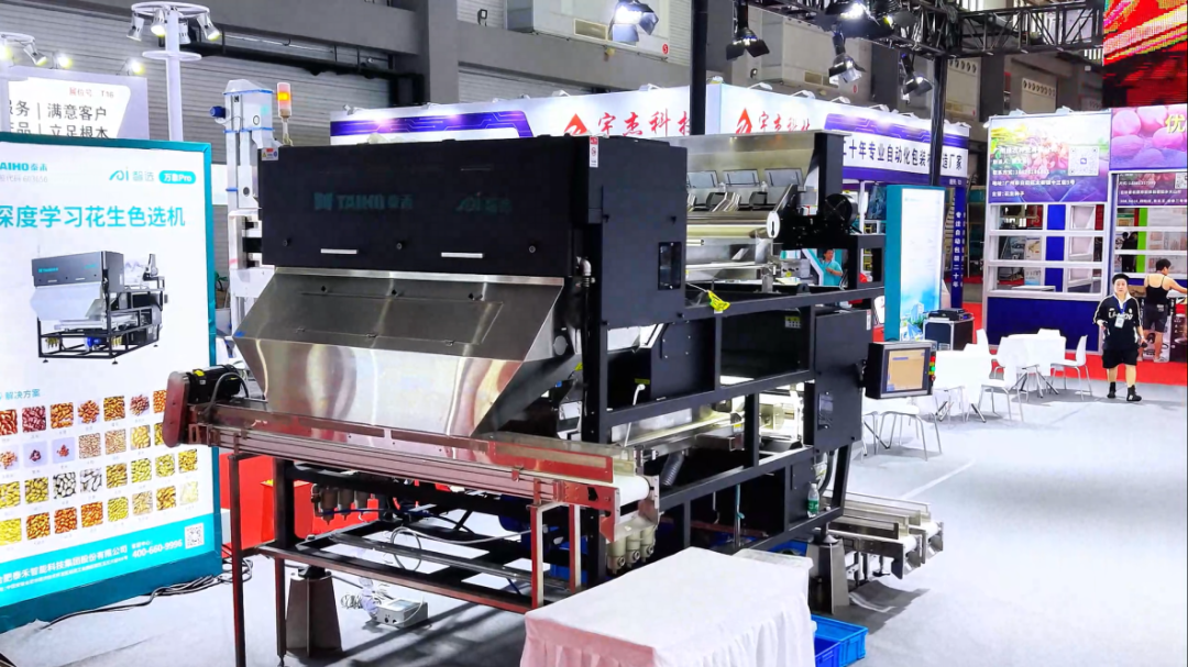7月9日,第十六屆中國(guó)花生交易博覽會(huì)圓滿落幕!泰禾智能攜全新"萬(wàn)象Pro系列色選機(jī)+X光異物檢測(cè)機(jī)"智能分選解決方案重磅參會(huì),以"AI視覺(jué)+工業(yè)互聯(lián)網(wǎng)"雙輪驅(qū)動(dòng)的技術(shù)實(shí)力,為花生產(chǎn)業(yè)打造從原料甄選到成品質(zhì)檢的全鏈路數(shù)智化標(biāo)桿。