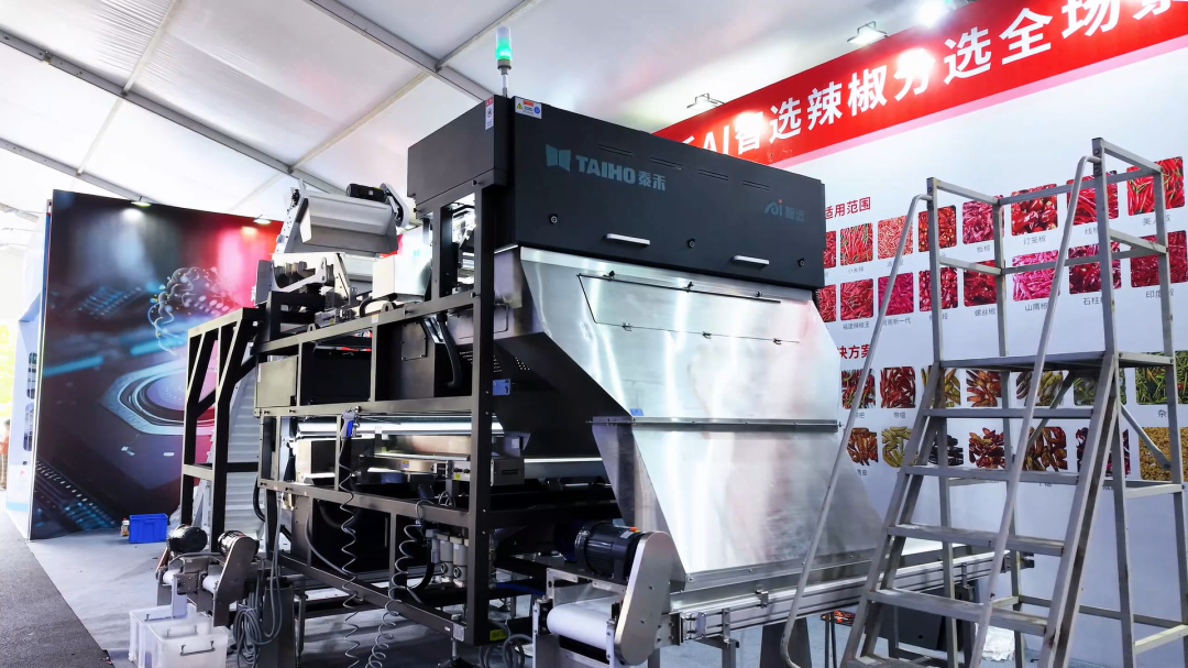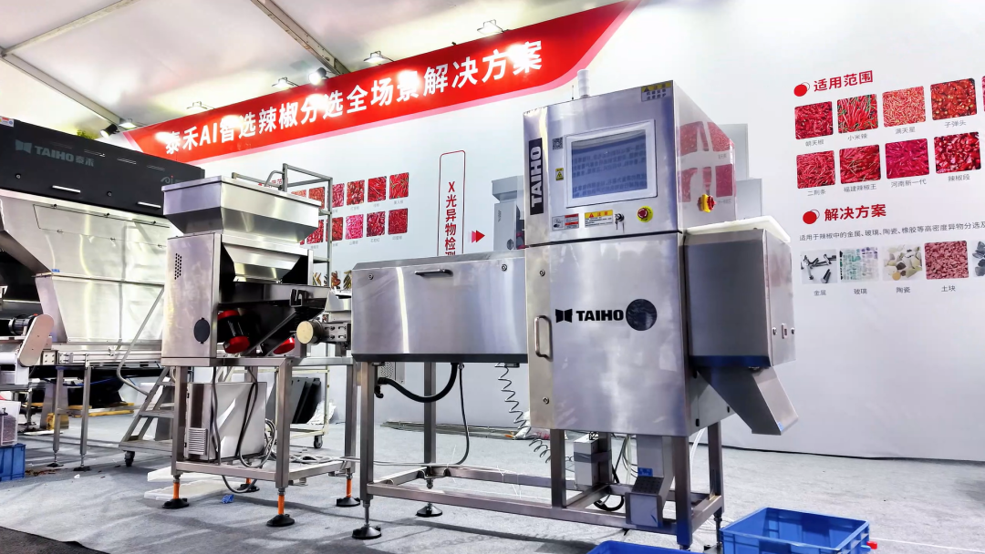 近日,2025第十屆貴州·遵義國際辣椒博覽會(以下簡稱“辣博會”)圓滿落幕。作為全國規模最大的專業辣椒博覽會,本屆辣博會以“生態貴椒·香辣天下”為主題,集中展示了辣椒全產業鏈的前沿成果。作為辣椒分選領先品牌,本次辣博會,泰禾智能攜萬象Pro辣椒色選機及X光異物檢測機參會,以“精準質控+安全護航”的創新實踐,為全球辣椒產業升級點燃新引擎。
