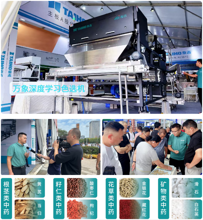 亳覽天下,藥會全球。9月8日,2025國際(亳州)中醫藥博覽會重磅啟幕。泰禾智能以“破局者”之姿,攜三大創新產品——萬象深度學習色選機、X光異物檢測機及智靈色選機強勢登場,從原料甄選到成品質檢的一站式解決方案,全方位賦能中醫藥產業鏈升級,為傳統中醫藥產業注入“智”能基因。