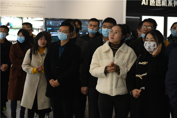 在設備演示廳,現場演示了智能分選過程,引起學員們的強烈興趣。大家圍在設備邊,仔細觀看了分選過程,詳細詢問了其應用范圍、技術特點等。在生產車間,講解員介紹了公司產品的技術亮點和生產過程,并就產品優勢與學員們做了交流。