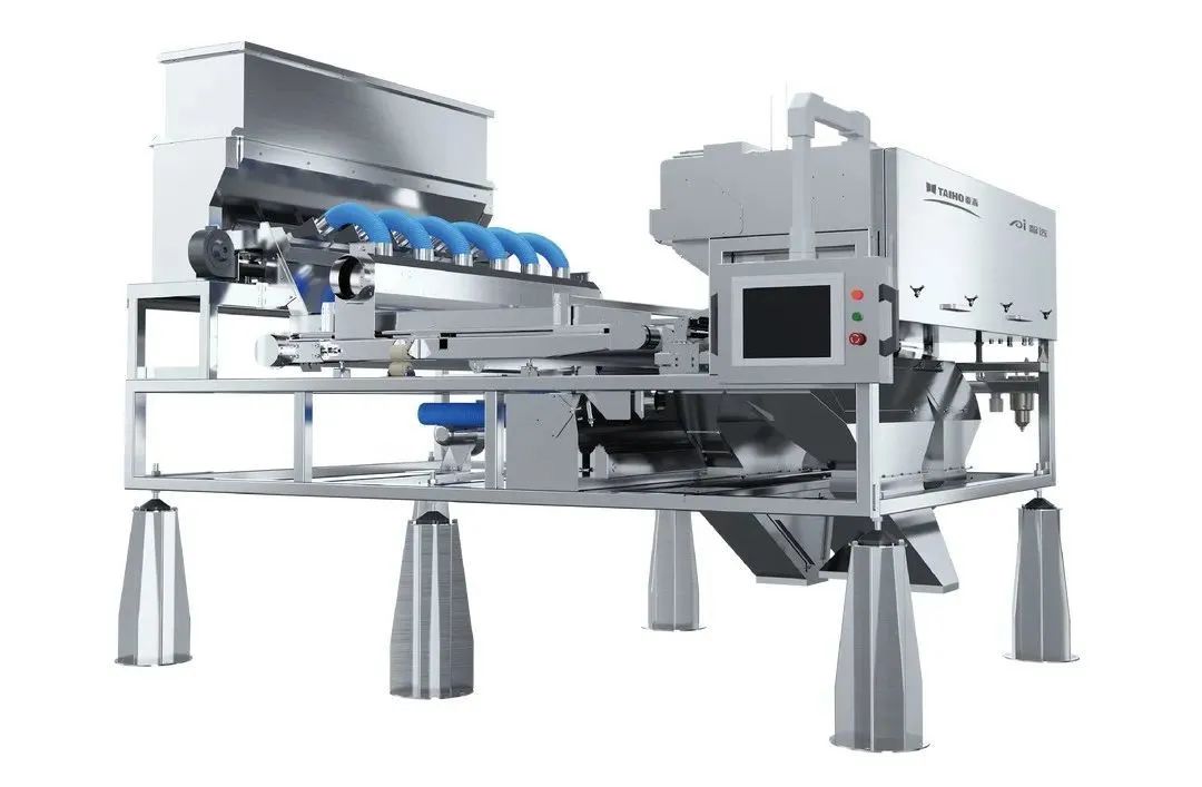 3.5億像素超清影像+類太陽光譜技術,實現360度多維成像;標配多譜共焦功能,實現對堅果中玻璃、干燥劑、透明塑料粒子有效剔除;可適配InGaAs紅外分選技術,精準識別玻璃、塑料、石子、金屬、煙頭、袋繩等惡雜。