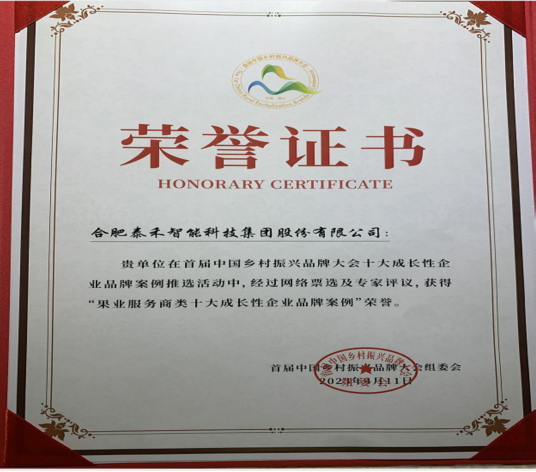 泰禾智能榮獲首屆中國鄉村振興品牌大會果業服務商類十大成長性企業品牌