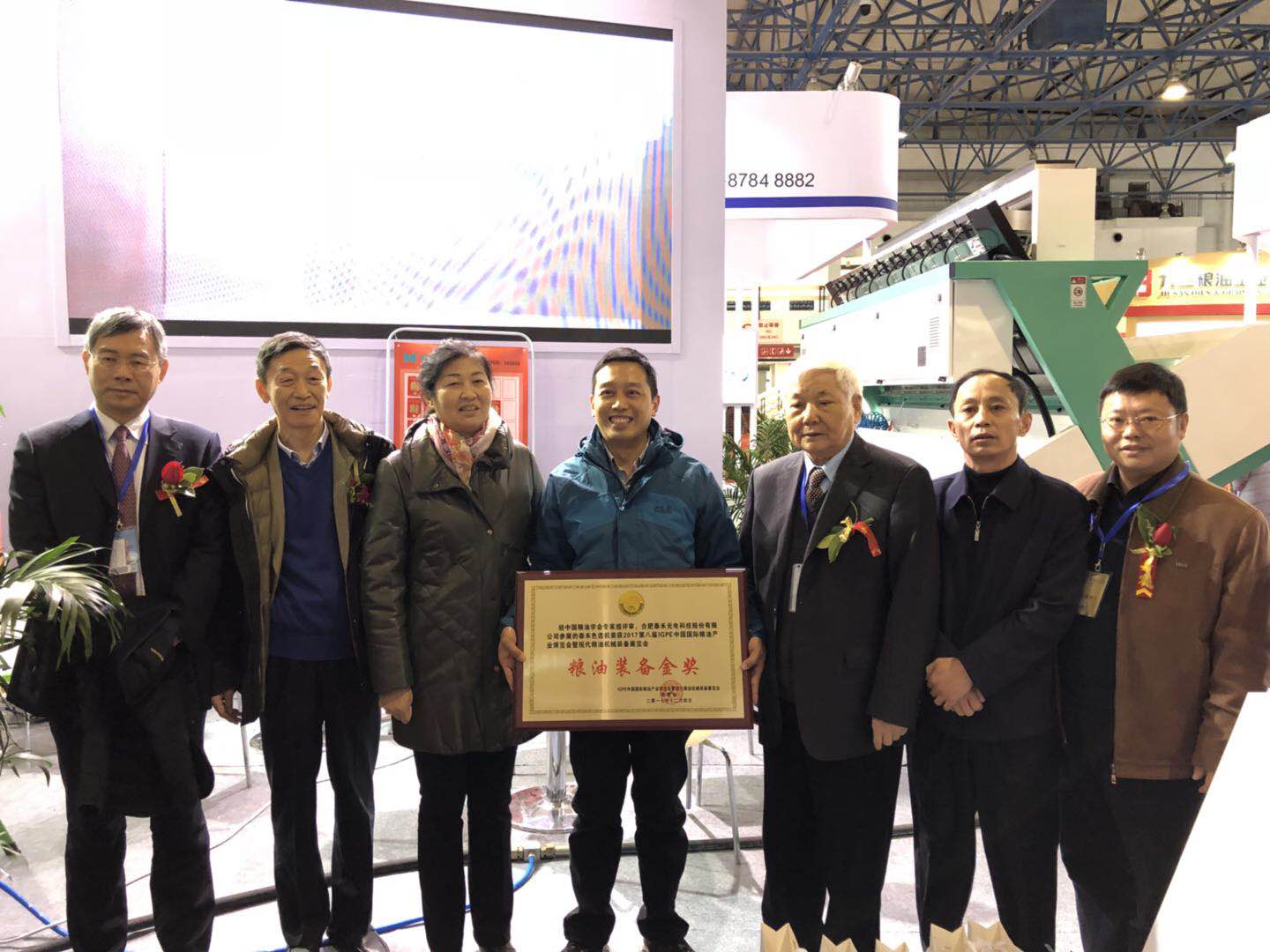 經(jīng)過層層評(píng)選,“泰禾”牌智能色選機(jī)在眾多產(chǎn)品中脫穎而出,榮獲第八屆 IGPE 中國(guó)糧油精品展“糧油裝備金獎(jiǎng)”。