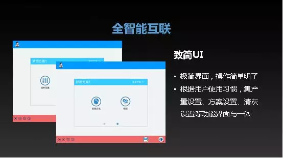 適應(yīng)性致簡UI,極簡界面,操作更簡單,根據(jù)用戶使用習(xí)慣,集產(chǎn)量設(shè)置、方案設(shè)置、清灰設(shè)置等功能界面與一體。