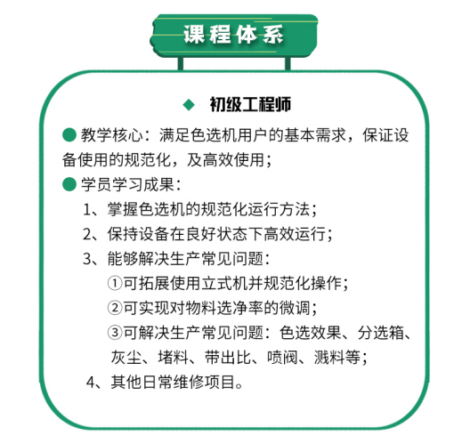 中級、高級色選機維護工程師課程預告:
